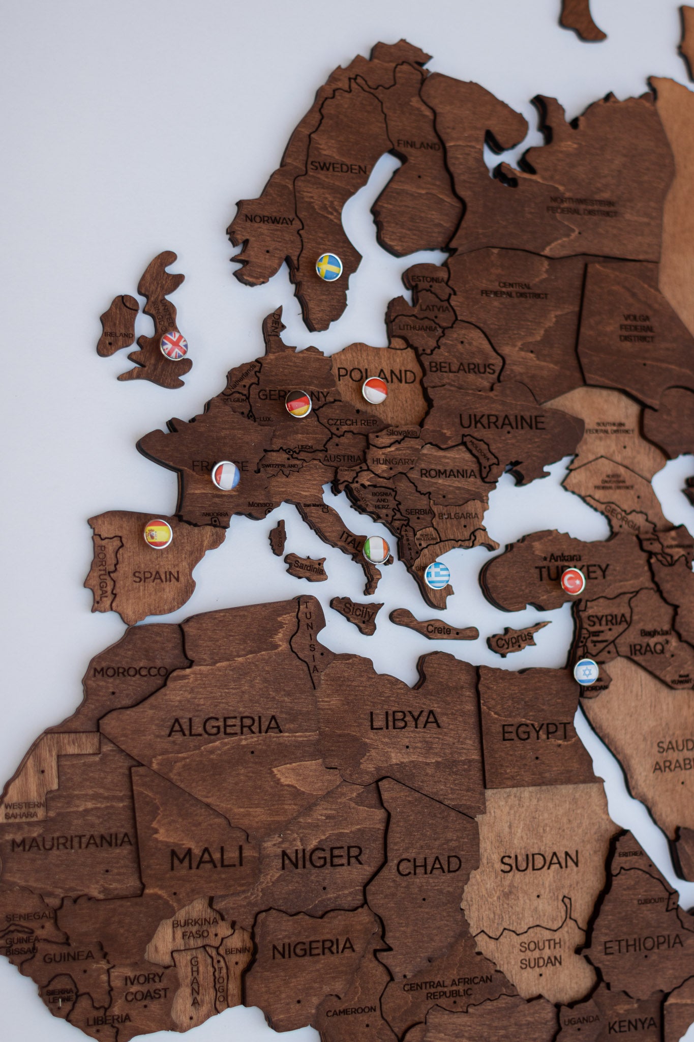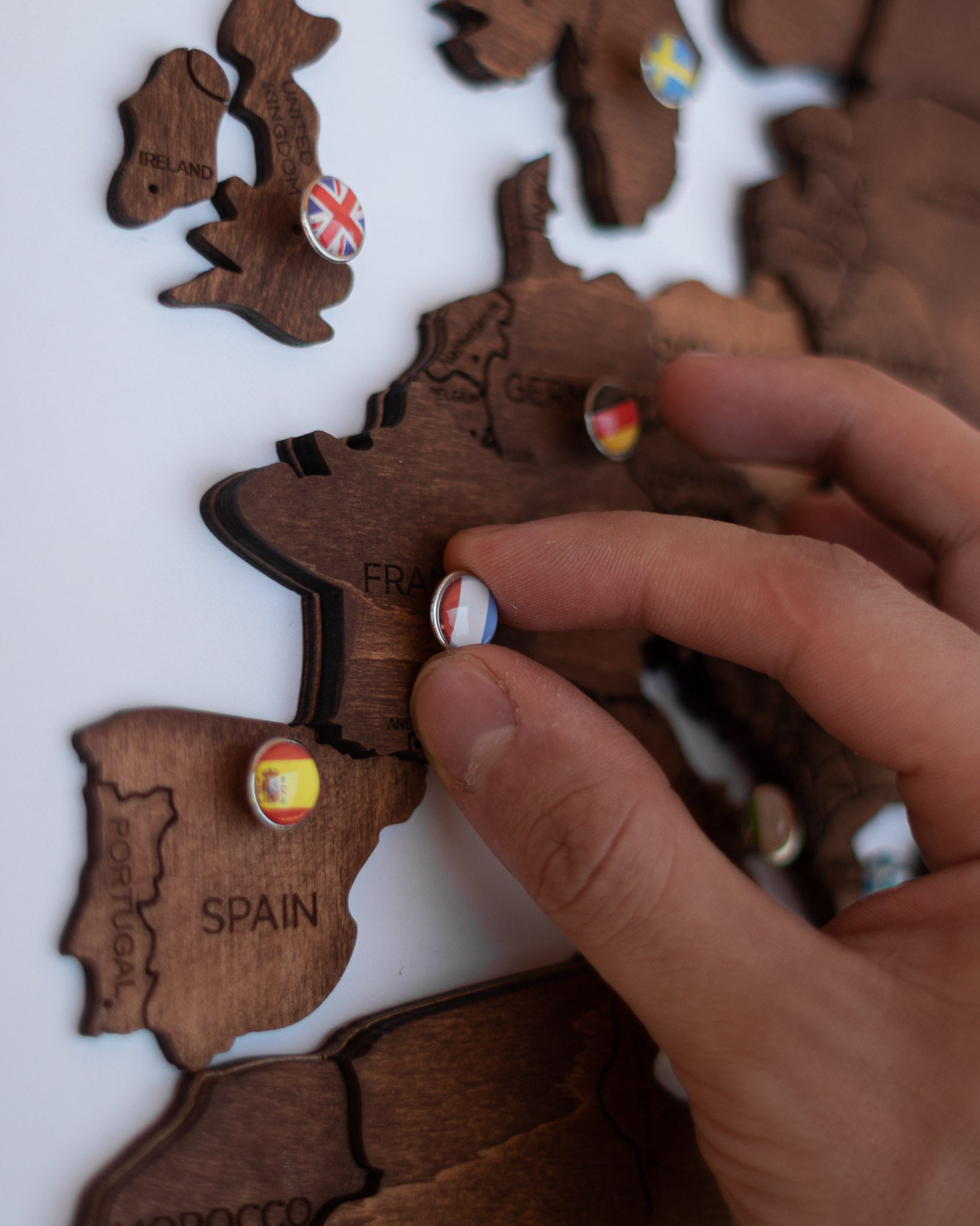 There is a die-hard cliché that wood is beyond competition and offers a timeless look. With our handcrafted wall maps, we could go on with more advantages. Our woodwork combines quality,and creative craftsmanship with time-tested wood types. Made of birch plywood, the wooden map is resistant to wear and tear. Besides, the elegant map design successfully transforms the mood of a room or entire place. This provides incredible value for your money.
